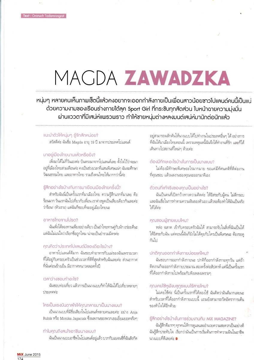 Tak, dalej współpracuję z EC Management. Zaraz po tym wywiadzie poleciałam na przepiękną chińską wyspę Xiamen z najlepszą agencją w całej Azji – Esee Model Management i byłam tam trzy miesiące. To miejsce, to takie swoiste centrum produkcji reklam ze względu na piękne plaże, czystą wodę wspaniałe tła i inne atuty, dlatego tam powstają produkcje, które są następnie publikowane w całych Chinach. Bardzo dużo pracowałam, ale jestem zadowolona, bo to były bardzo dobre pieniądze.