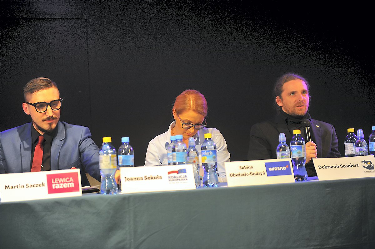 Niestety, poprzez nieobecność swoich kandydatów wydarzenie wydatnie zubożyły dwa komitety, które w sondażach przodują. Oczywiście mowa o Prawie i Sprawiedliwości i Koalicji Europejskiej. Przybyli natomiast: Dominik Pałka – Fair Play, Artur Wilk – Kukiz’ 15, Martin Saczek – Lewica Razem, Sabina Obwiosło-Budzyń – Wiosna, Dobromir Sośnierz – Konfederacja KORWiN Braun Liroy Narodowcy.