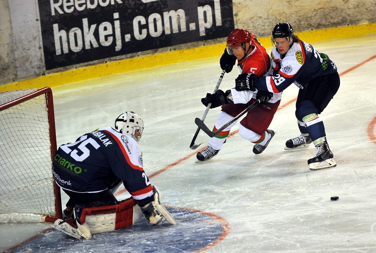 Sosnowiczanie mocnym akcentem rozpoczęli spotkanie z Olimpią. Już w pierwszych 5 minutach nasz zespół oddał dwa celne strzały. Za pierwszym razem uderzał Jakub Arak, a za drugim Martin Pribula, jednak w obu sytuacjach dobrze zachował się Bartosz Fabiniak.