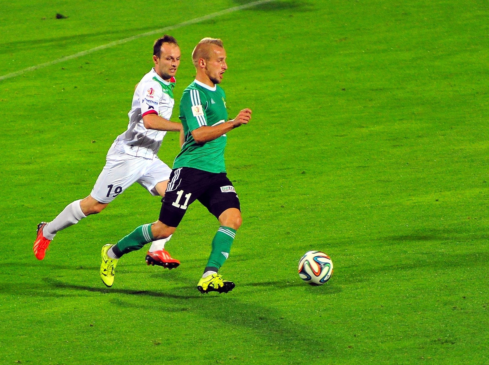 Kapitan Olimpii Michal Piter-Bučko w 20. minucie sfaulował Jakuba Araka, a osiem minut później tuż przed polem karnym nieprzepisowo powstrzymał Martina Pribulę. Oba te przewinienia, zdaniem sędziego, zasługiwały na pokazanie żółtych kartek i goście musieli radzić sobie bez jednego gracza. Problem gości mógł być jeszcze większy, bo po drugim faulu Sebastian Dudek trafił z rzutu wolnego w słupek.