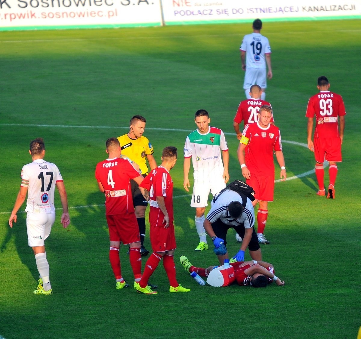 Sosnowiczanie zostali skarceni w doliczonym czasie gry. Wcześniej wiele strzałów zza pola karnego udało się zablokować, ale uderzenie Sebastiana Dei znalazło drogę do siatki.