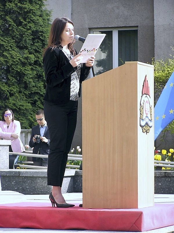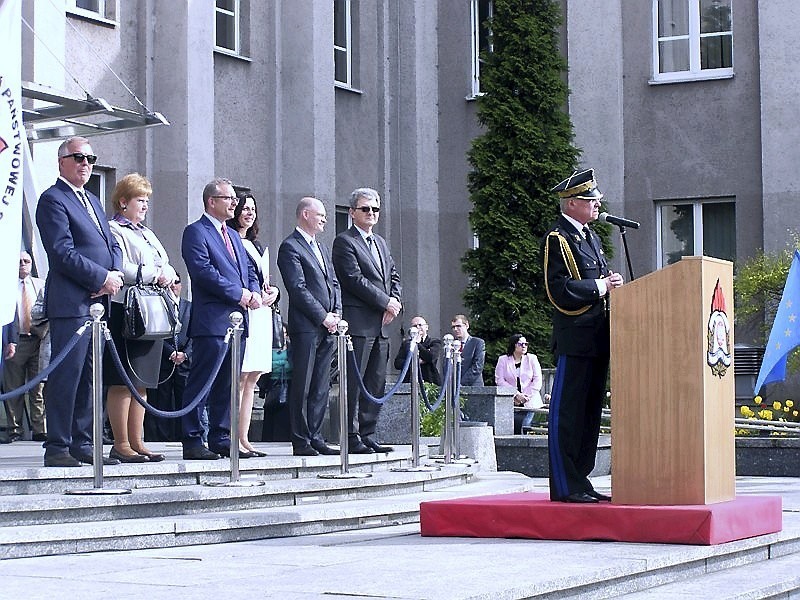 Na koniec uroczystości głos zabrali goście, między innymi zastępca Śląskiego Komendanta Wojewódzkiego bryg. mgr inż. Erwin Jaworudzki, prezydent Arkadiusz Chęciński oraz przedstawicielka Wyższej Szkoły Humanitas w Sosnowcu.