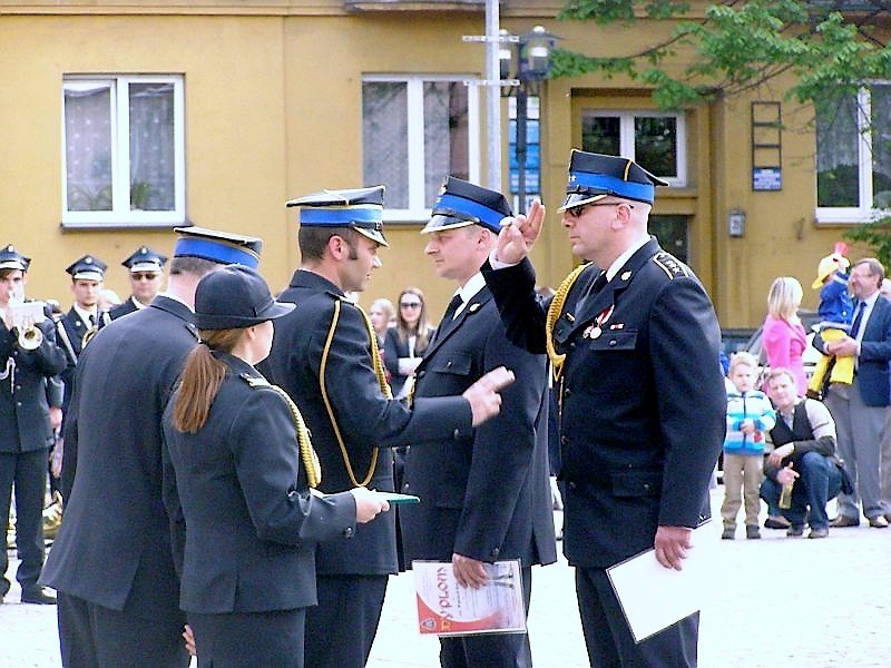 Po oficjalnym powitaniu nastąpiło przyznawanie awansów, medali i wyróżnień. Wyczytywani występowali z szyku wychodząc uroczyście na środek placu. Wśród odznaczonych nie zabrakło też kobiet oraz strażaków wyróżnionych za wyjątkową ofiarność, jak np. asp. sztab. Artur Spyra, który poza służbą uratował życie ofierze wypadku. Przekazano też oficjalnie dokumenty nowych pojazdów PSP, w czym brał udział Prezydent Arkadiusz Chęciński.