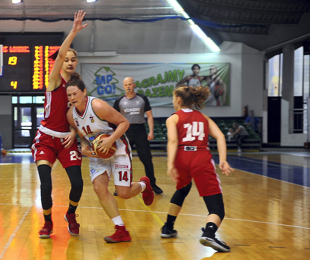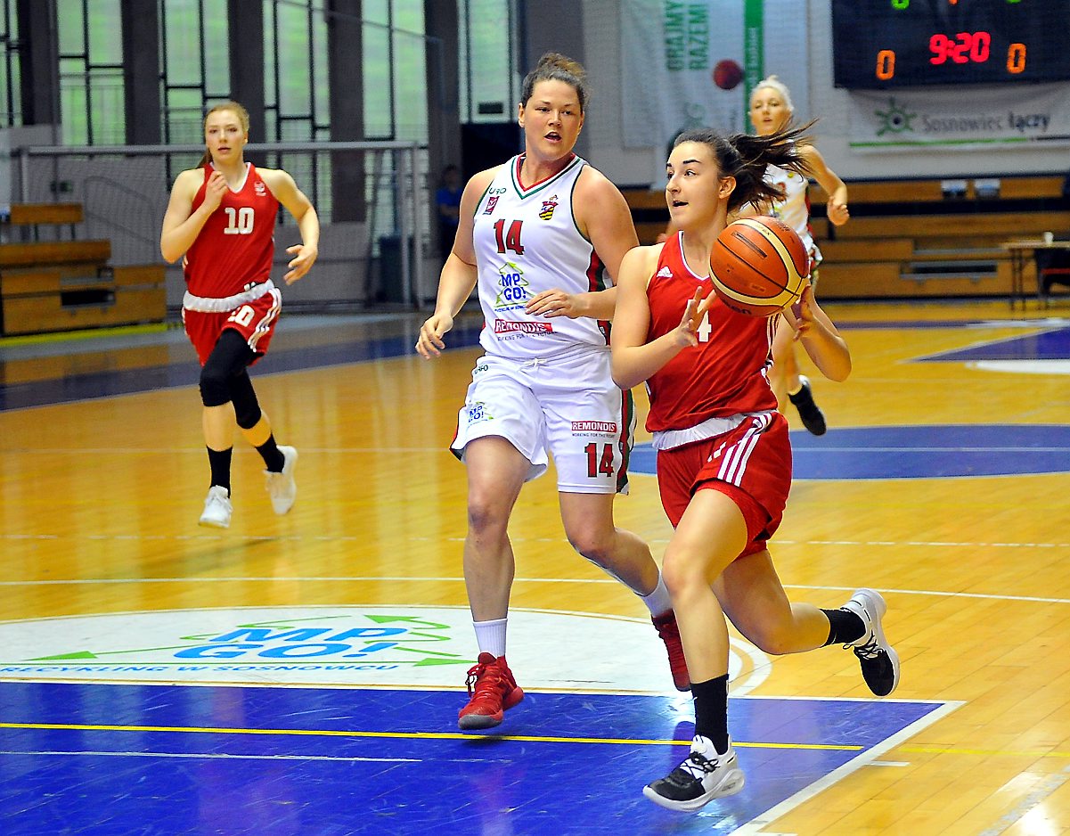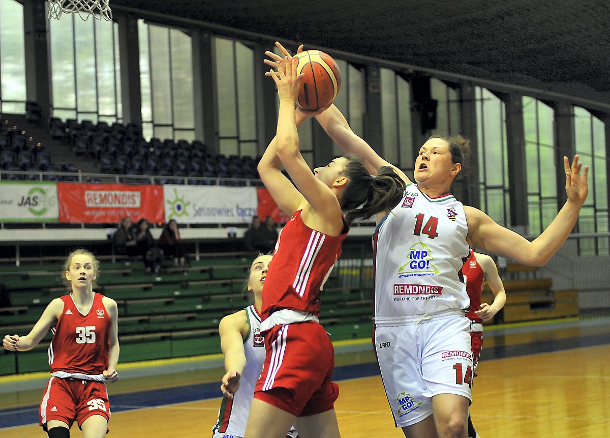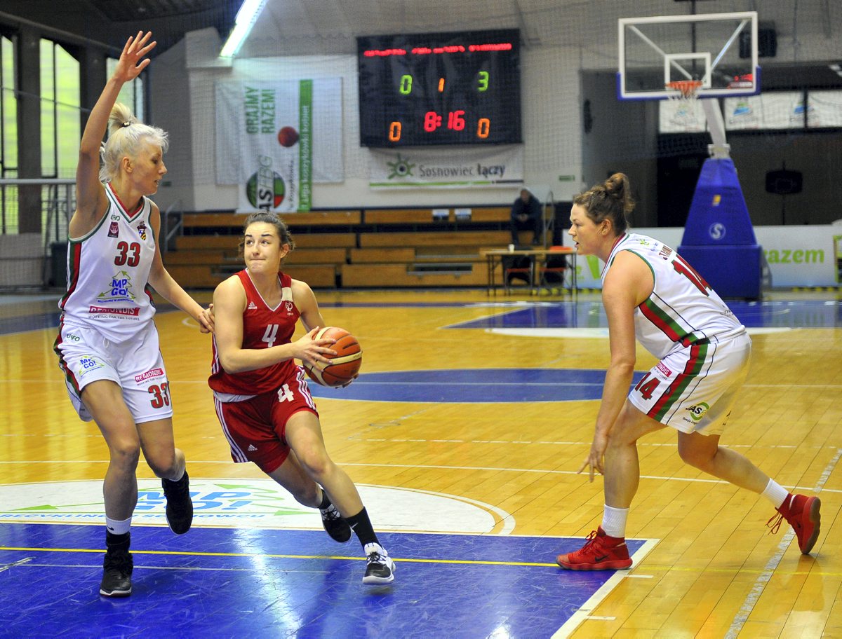 Sosnowieckie koszykarki przystępowały do rewanżu z czteropunktową zaliczką z pierwszego spotkania. Rywalki od początku meczu wzięły się więc za odrabianie strat z dwumeczu. Pierwsza kwarta należała do zespołu z Łomianek, który grał szybko, mocno w obronie i wymuszał błędy naszych koszykarek. Sosnowiczanki ani razu w tej części gry nie były na prowadzeniu, a pierwszy od 0:0 remis widniał na tablicy dopiero na 11 sekund przed końcem kwarty, w której przyjezdnym udało się odskoczyć nawet na 8 punktów (8:16 w 6. minucie).