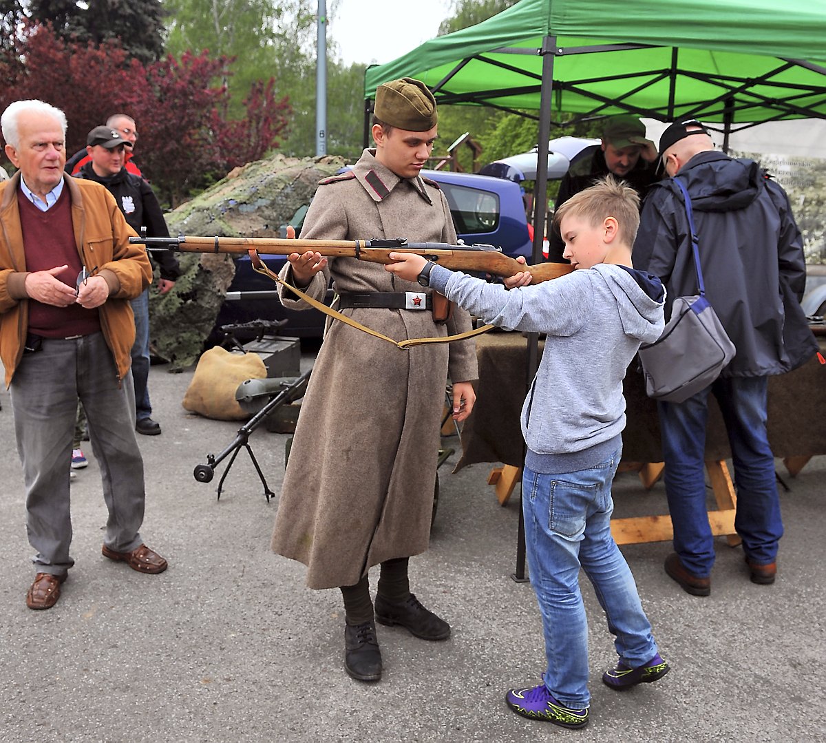 Największym zainteresowaniem cieszył się czołg T – 34, który – jak twierdzą niektórzy historycy – „wygrał” tę największą z wojen świata. Mimo, że brakowało współczesnego uzbrojenia i wyposażenia, to najmłodsi bawili się wybornie. Z głośników dochodziły hity wojskowych pieśni, a około godz. 12 można było zakupić i skosztować oryginalną wojskową grochówkę. Imprezę uświetnił występ Sosnowieckiej Orkiestry Dętej pod batutą Sebastiana Jandy.
