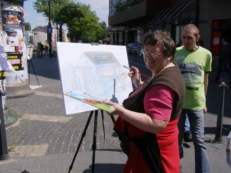 Dzisiaj od godziny 10:00 do 13:00 centrum Sosnowca opanowali artyści z grupy „Relacje”, realizujący akcję: „Malujemy przed Muzą, czyli portret ulicy”.