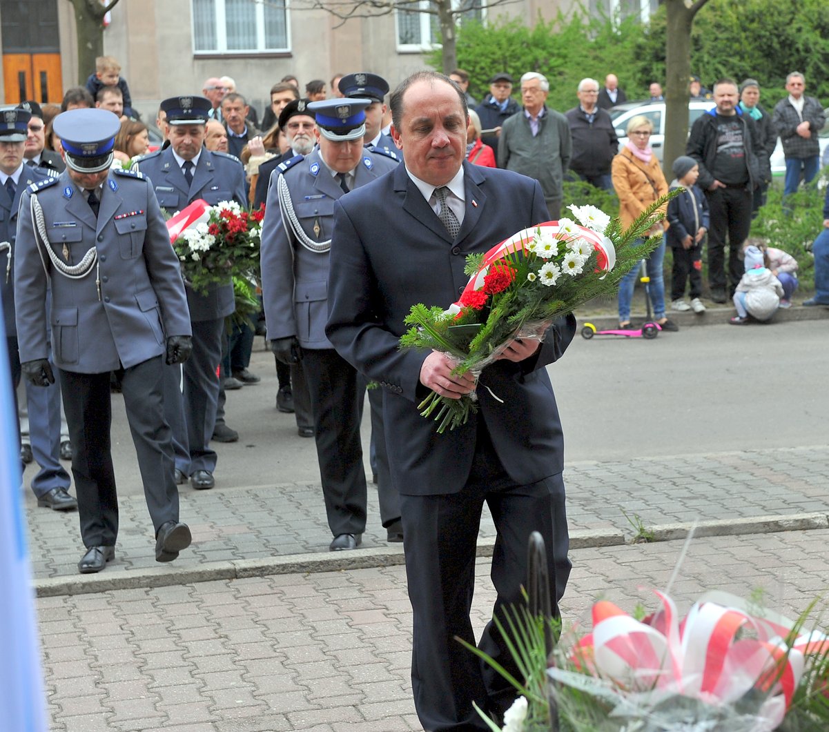 Tylko kilkudziesięciu sosnowiczan przybyło dzisiaj przed południem na uroczystości Konstytucji 3 Maja pod pomnik przy ul. Zwycięstwa. Parlamentarzystów nie widzieliśmy, jedynie przedstawicieli posłanek Barbary Chrobak i Barbary Dolniak oraz senatora Michała Potocznego. Miasto reprezentowali: Prezydent Miasta Sosnowca Arkadiusz Chęciński, przewodniczący Rady Miejskiej Wilhelm Zych, radni Wanda Olko, Jan Bosak, Janusz Kubicki, doradca prezydenta Marek Barański. Wśród publiczności dostrzegliśmy jeszcze radnego Karola Winiarskiego i byłego posła Jarosława Piętę.