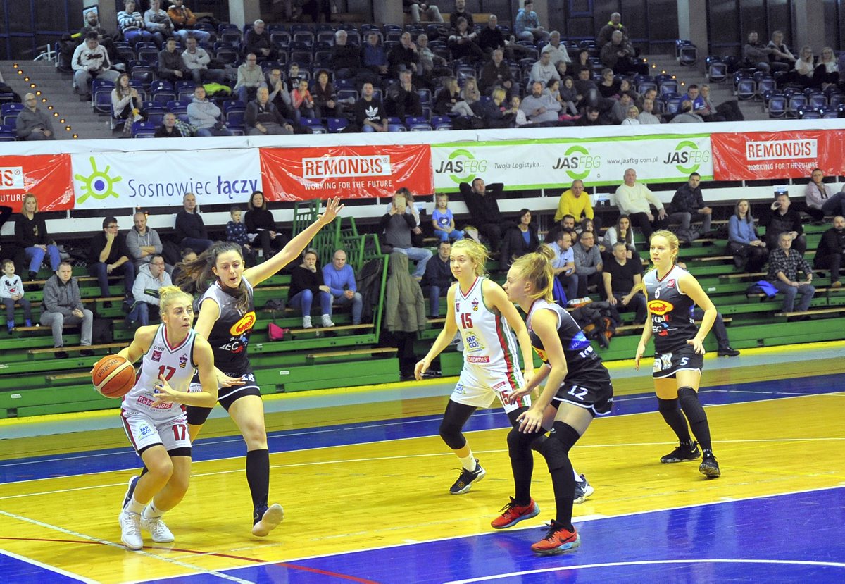 Drużyna z Pabianic stawiała opór sosnowiczankom tylko w pierwszej kwarcie, w której rywalkom udało się prowadzić nawet 6 punktami (2:8). Wszystko szybko jednak wróciło do normy, jaką w tym sezonie, jest pewne prowadzenie przez drużynę z Sosnowca. Już na przerwę po pierwszej kwarcie nasz zespół zszedł przy 3 punktach przewagi, a w drugiej części meczu powiększył prowadzenie do 20 punktów.